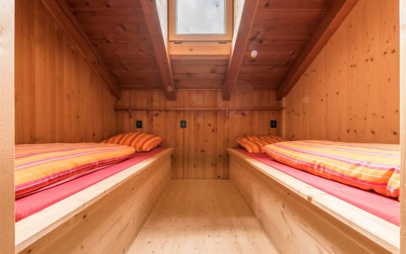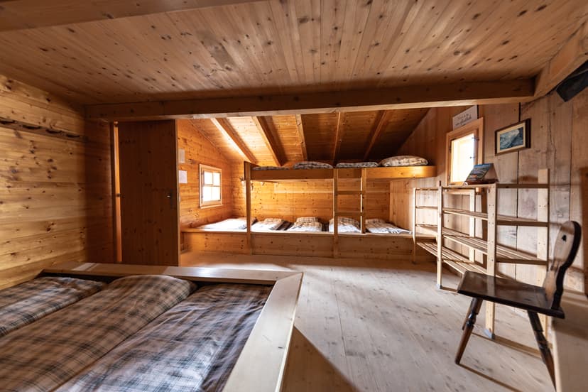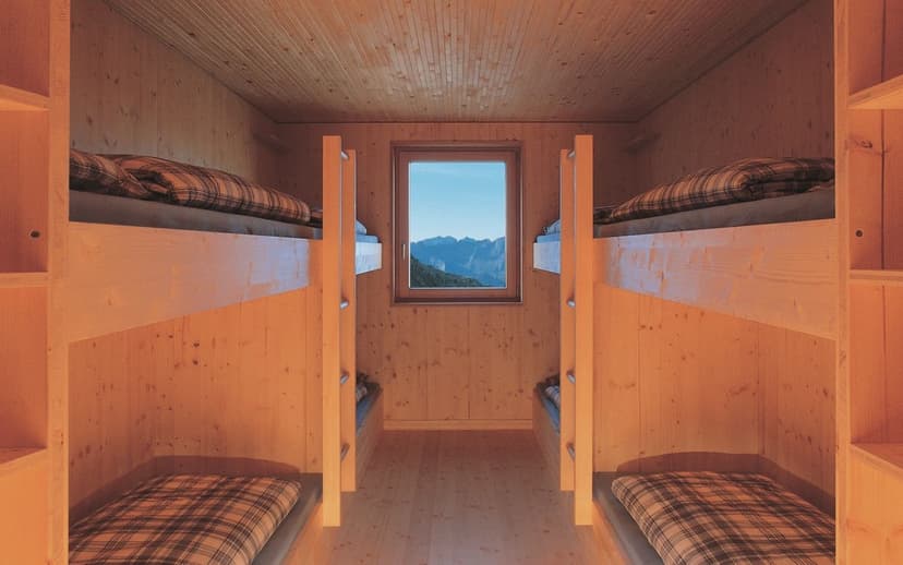 22:00 — Hüttenruhe (tysta timmar). Släck lamporna. Respektera detta helt och hållet — packa din väska kvällen innan så att du inte rustlar med den klockan 5 på morgonen.