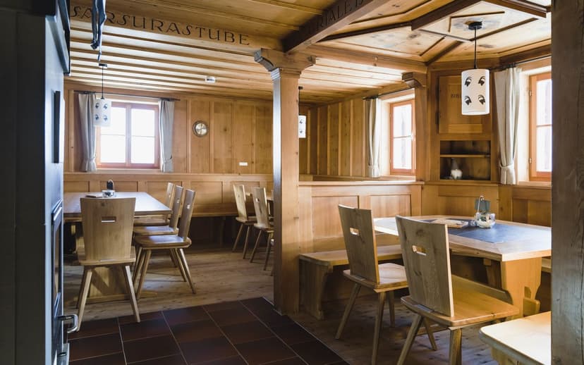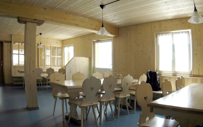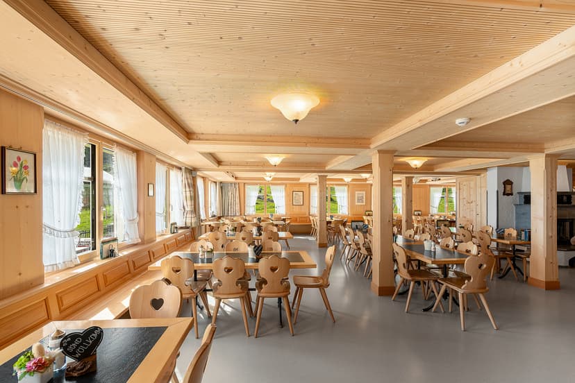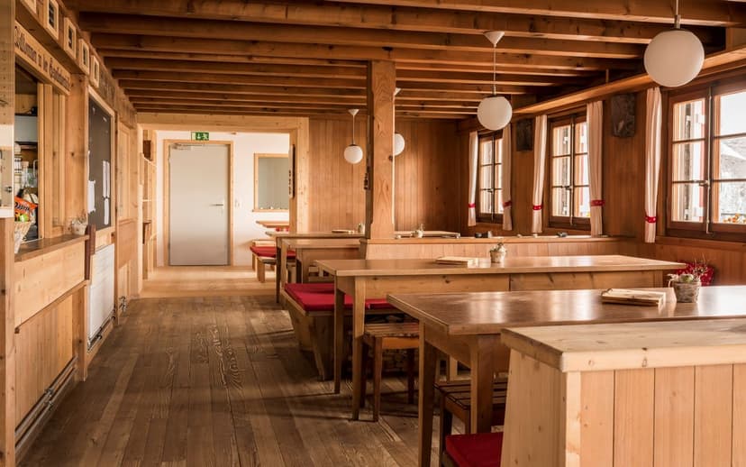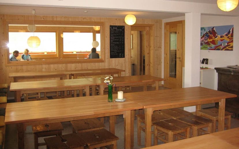 18:00–19:00 — Middagsservering. Var sittande när middagen börjar — köket väntar inte. Middagen är vanligtvis en rejäl trerättersmåltid: soppa, en huvudrätt (ofta Rösti, pasta eller polenta) och dessert.