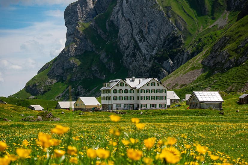 Ett kompakt kalkstensmassiv i nordöstra Schweiz, nåbart på under två timmar från Zürich. Alpstein är känt för sina klippans gästhus som är byggda i bergväggar och belägna på utsatta ryggar, samt för en vandringskultur som centrerar kring dessa anläggningar snarare än SAC-hytter. Boendet här är bland de mest distinkta i Alperna. Säsongen sträcker sig från juni till oktober, med höstfärger i september som en särskild höjdpunkt.