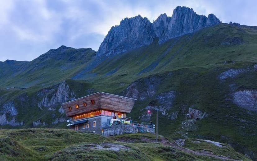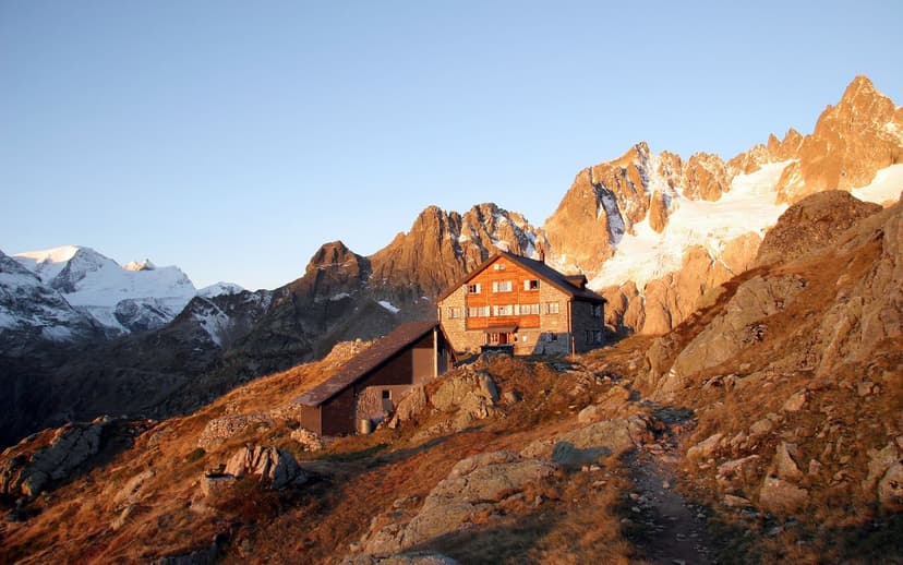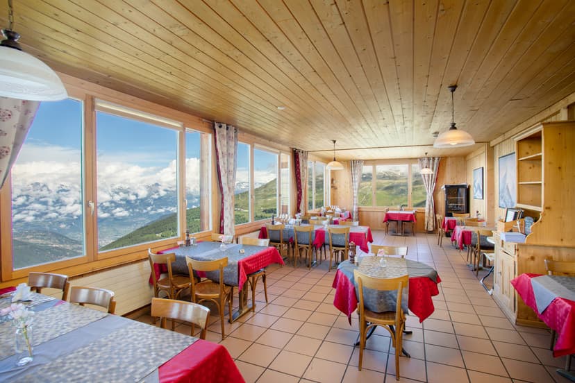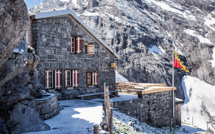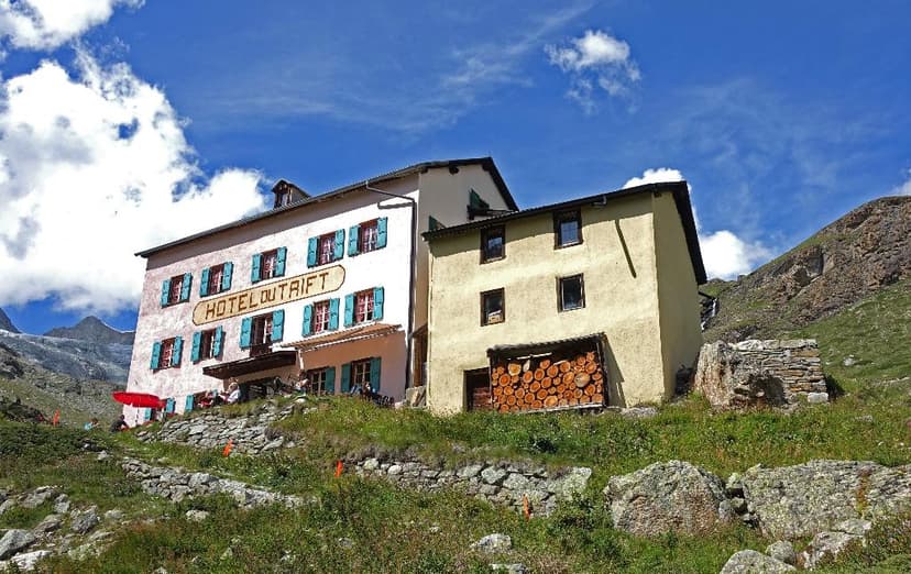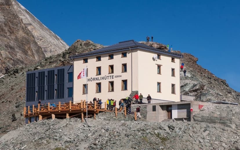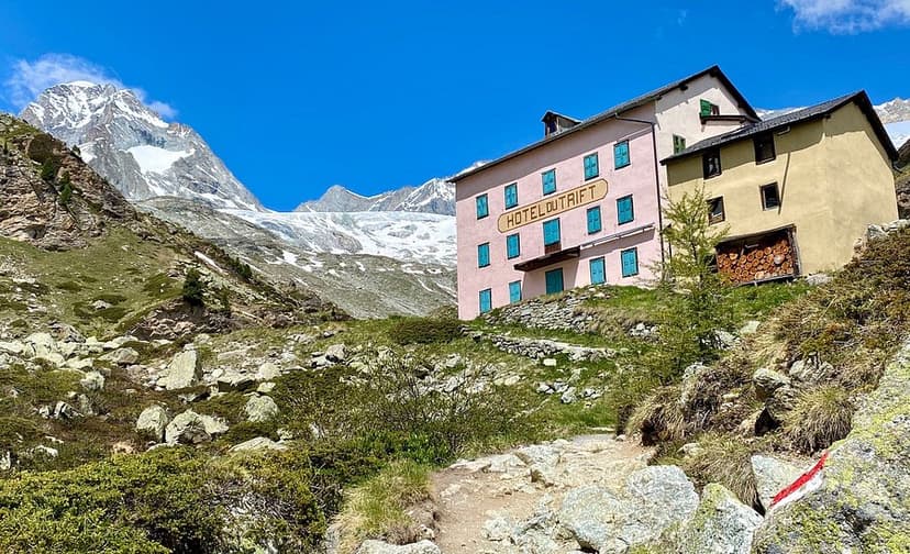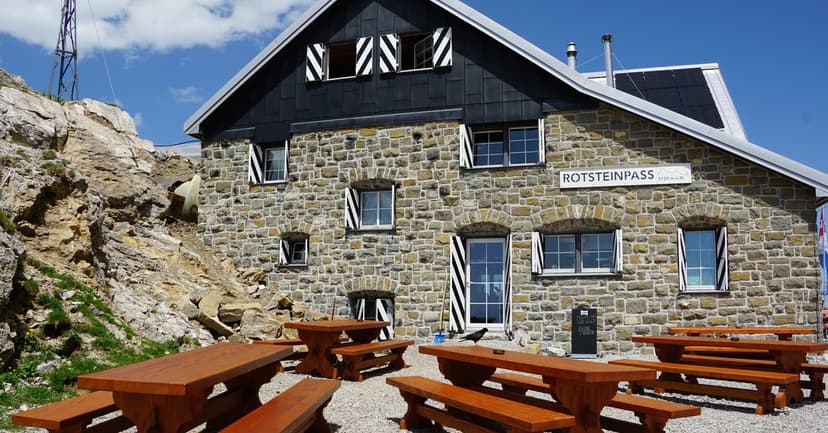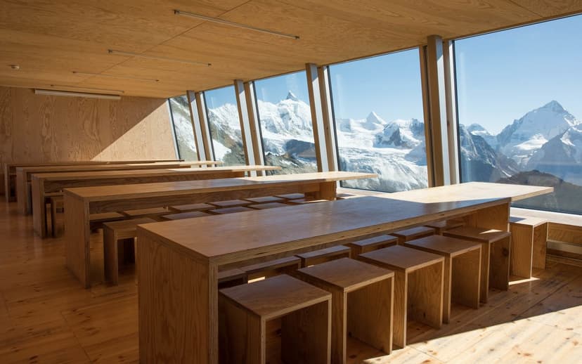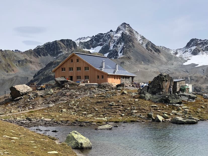 Du har klättrat i fem timmar. Stigen når en stenig axel i Pennine Alperna, och där är det — en stenbyggnad som ligger ovanför en glaciärsjö, den schweiziska flaggan spänd i vinden, en terrass full av vandrare som njuter av kalla öl i eftermiddagssolen. Du släpper din ryggsäck, snörar av dig kängorna och sätter dig ner med en utsikt som får de sista 1 200 metrarna av höjdökning att kännas som en rättvis affär.