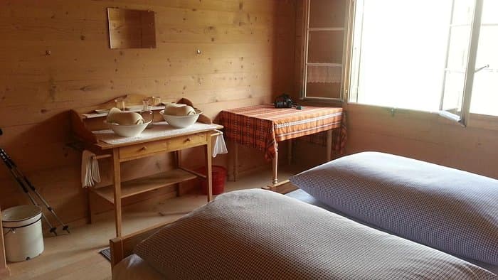 Privata rum (ett fåtal erbjuder dem, men de bokas månader i förväg). Handdukar eller sovark — ta med din egen silkes- eller bomullsliner. Garanti för varma duschar (vissa stugor har myntdrivna duschar för CHF 2–5; många har inga). Pålitlig Wi-Fi eller mobil signal. Lyx av något slag — detta är fjällskydd, inte hotell.