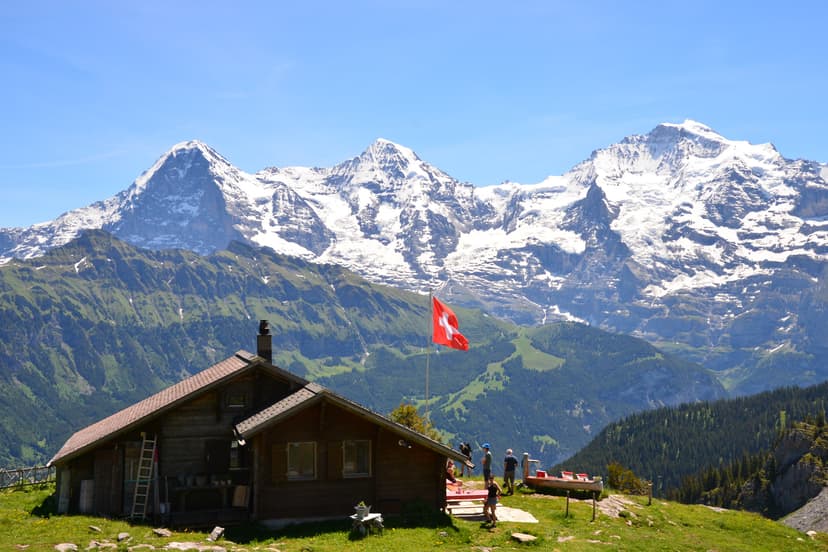 Det klassiska schweiziska vykortet. Eiger, Mönch och Jungfrau dominerar silhuetten, och välunderhållna stigar trådar mellan Grindelwald, Lauterbrunnen och Kandersteg. Detta är Via Alpina-territorium — den mest populära långdistansleden i landet passerar här — och boendeinfrastrukturen matchar efterfrågan. Säsongen pågår från juni till oktober, med juli och augusti som de mest hektiska månaderna.